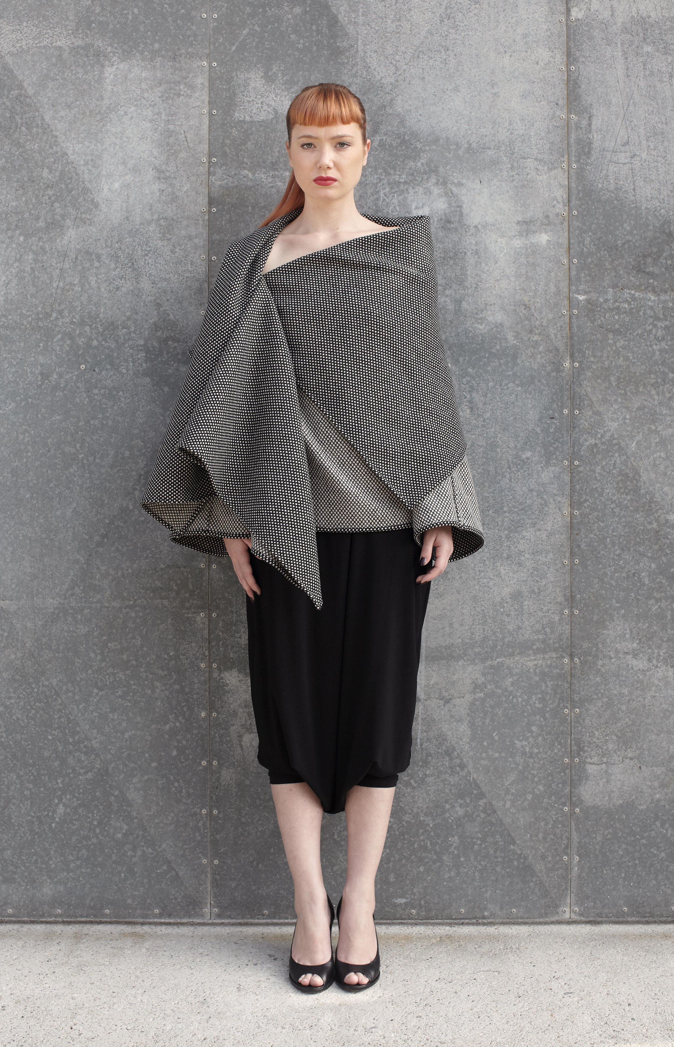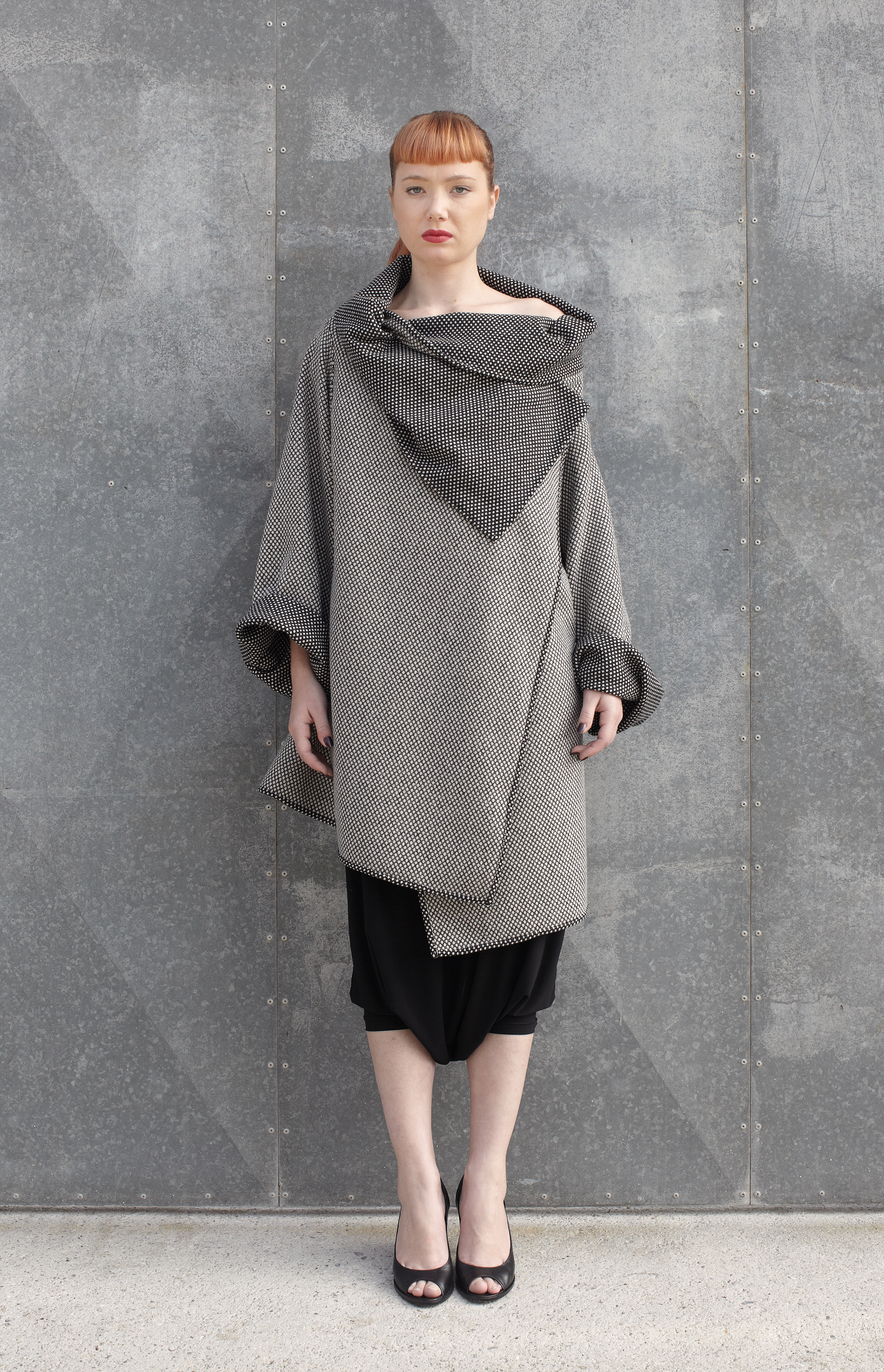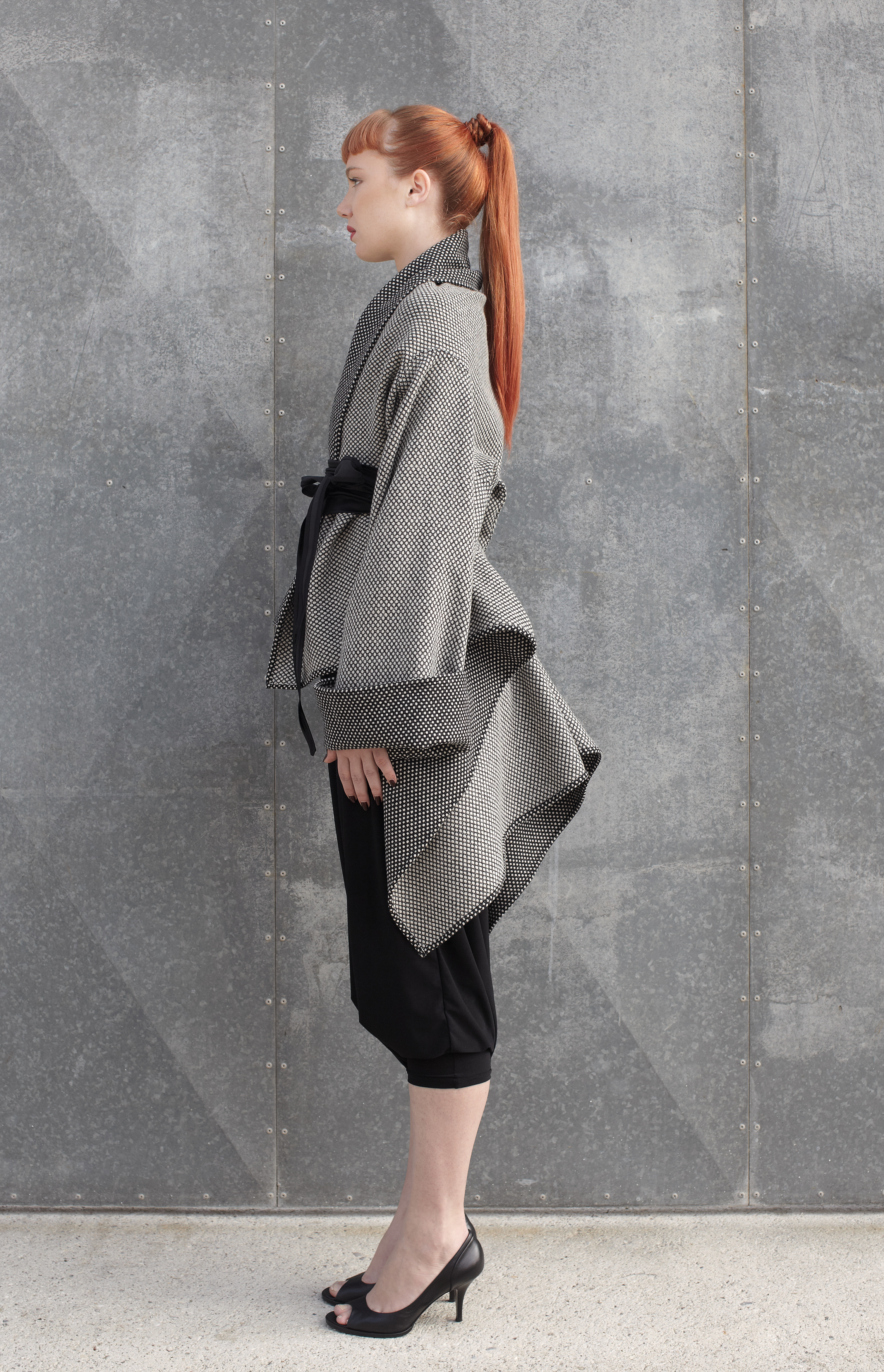 Può essere indossato come giacca, mantella, cappotto, abito o gonna, a seconda del tessuto e dalla corporatura di chi le indossa. Chiuso da una cintura, fermato con uno spillone o semplicemente adagiato sul corpo senza allacciature, è sempre un capo dalle linee esclusive che sorprendono ogni volta. Se capovolto, magicamente diventa corto e dotato di collo gigante o cappuccio.